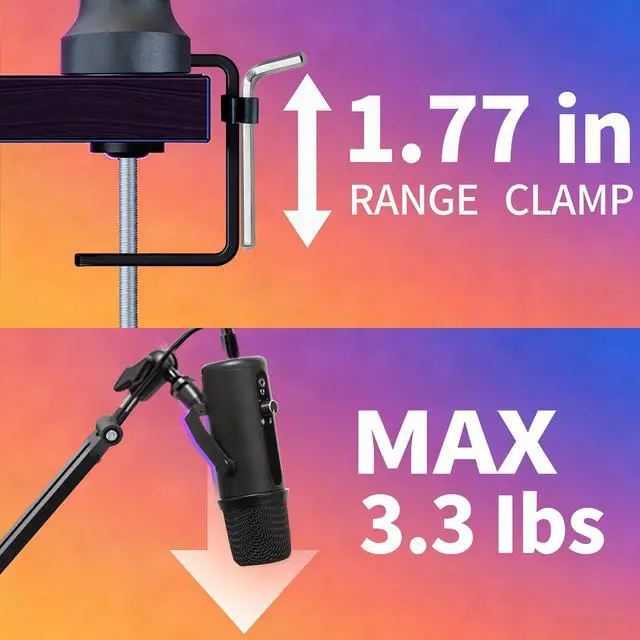 Sturdy & Stable with Easy Adjustments Durable construction and a heavy-duty clamp keep your microphone secure, while adjustable tension knobs allow for smooth and effortless positioning.