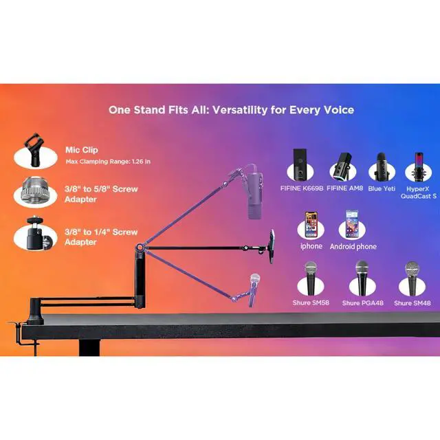 Low-Profile Design Saves Space Compact and sleek, this mic stand fits perfectly on your desk without taking up much room, ideal for small spaces or cluttered setups.