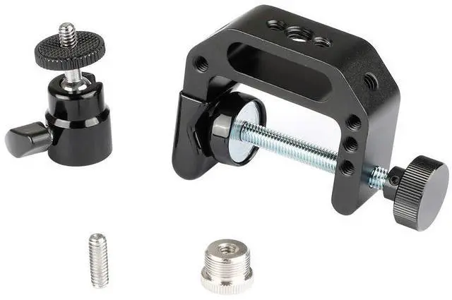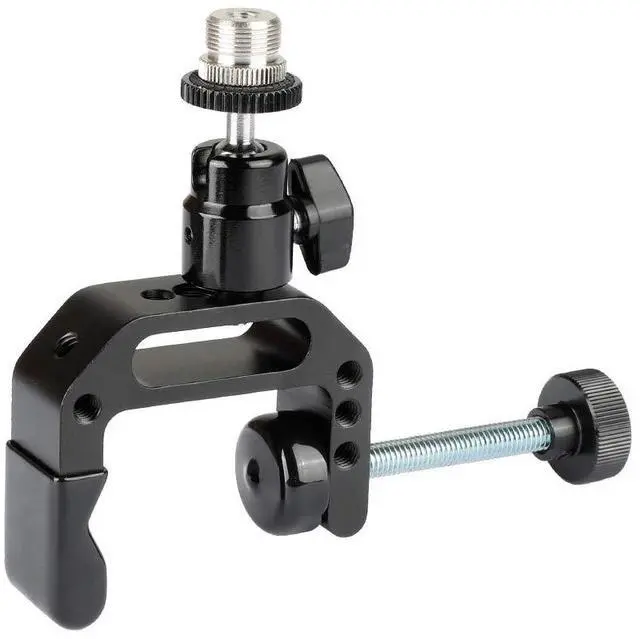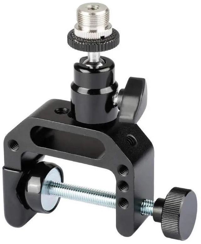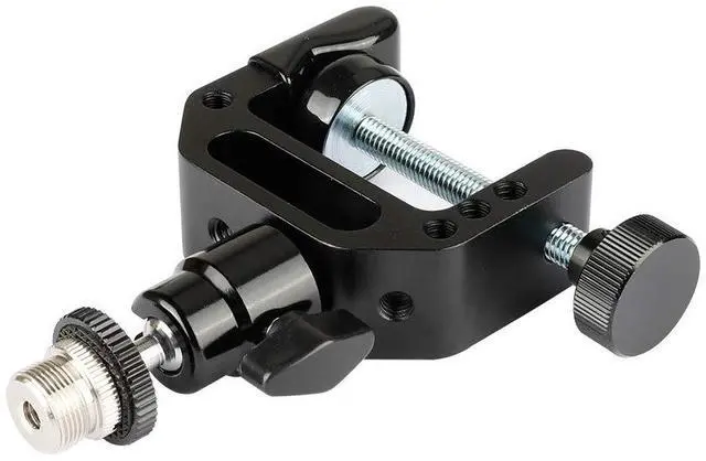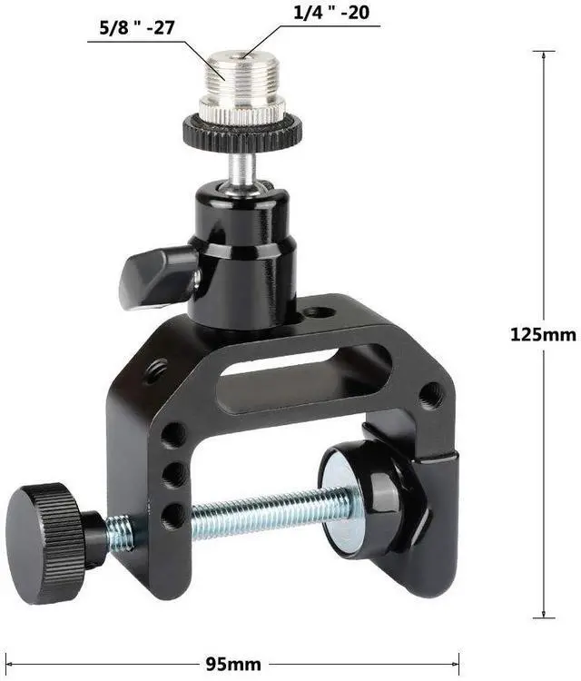 The combination could conveniently hold up your microphone to shelves, plate glass, cross bars, steel, desktop and more for the opening of the jaw ranging from 3mm to 42mm.The attached mini ball head allows for 360° swivel & 90° tilt, you can adjust the angle as you want.
