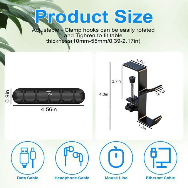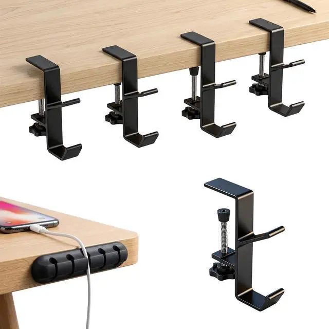 Multi-Function Headphone Hanger & Silicone Cable Holder Combo Set: Instantly Organize, Create a Tidy & Efficient Space