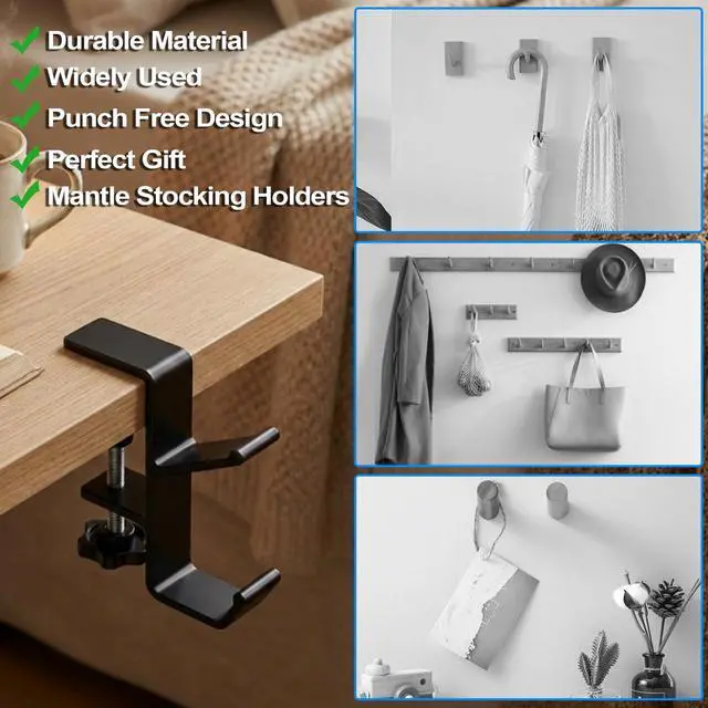 Versatile Use, Unlocks Multiple Organization ScenesMore than just a headphone stand, its sturdy hook design is perfect for hanging game controllers, cables, backpack straps, kitchen utensils, or even small suitcase handles. Whether in your study, living room, or workspace, it serves as a multi-purpose organization point to flexibly meet various needs.