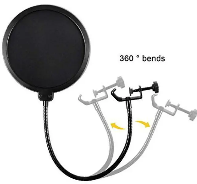 Flexible pipe made of carbon steel, perfect flexibility. The metal gooseneck holder fully supports the filter's weight and keep it in place. You can adjust the angle and distance between the screen and the microphone .