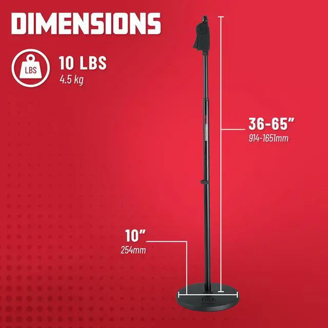 Gator Frameworks Microphone Stand with 10" Weighted Base and Deluxe Soft Grip Squeeze Height Adjustment (GFW-MIC-1001)