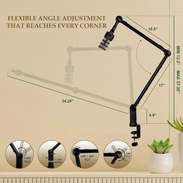 Make it easier to record podcasts, broadcast to the radio, or talk to your gaming friends with an adjustable mic boom arm designed for efficiency and convenience.