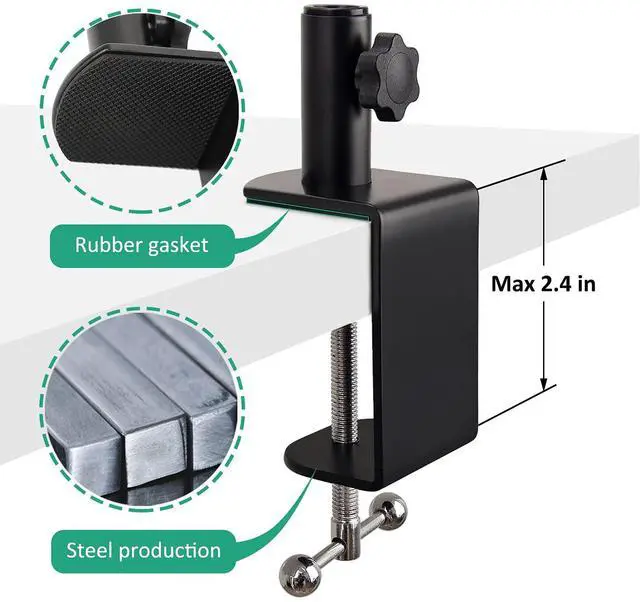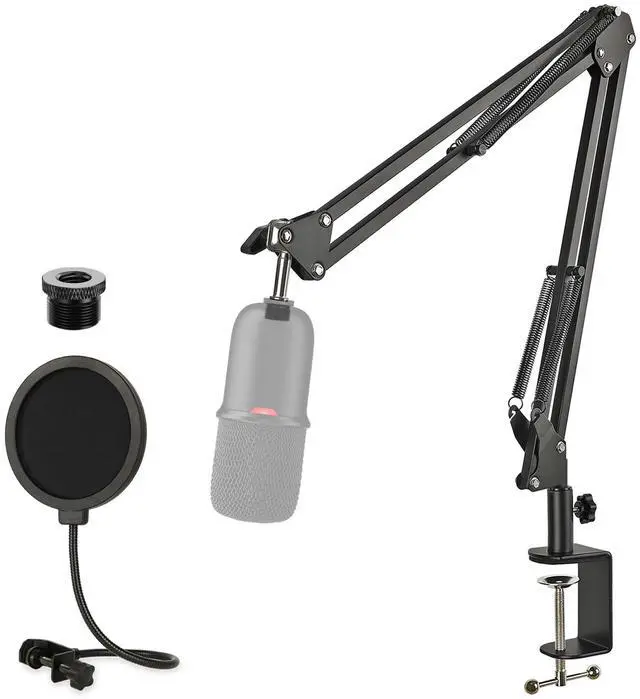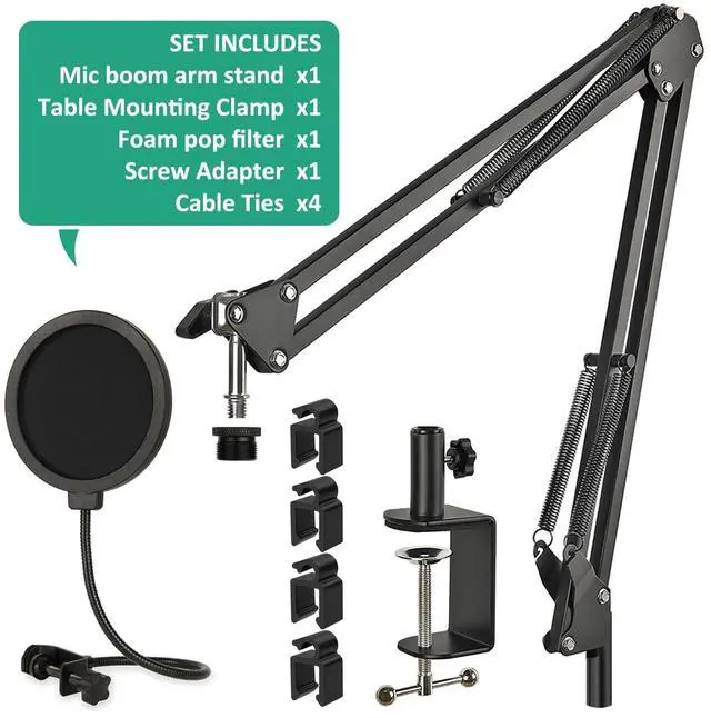 The pop filter has a flexible 360° gooseneck clip stabilizing arm that can support its own weight.