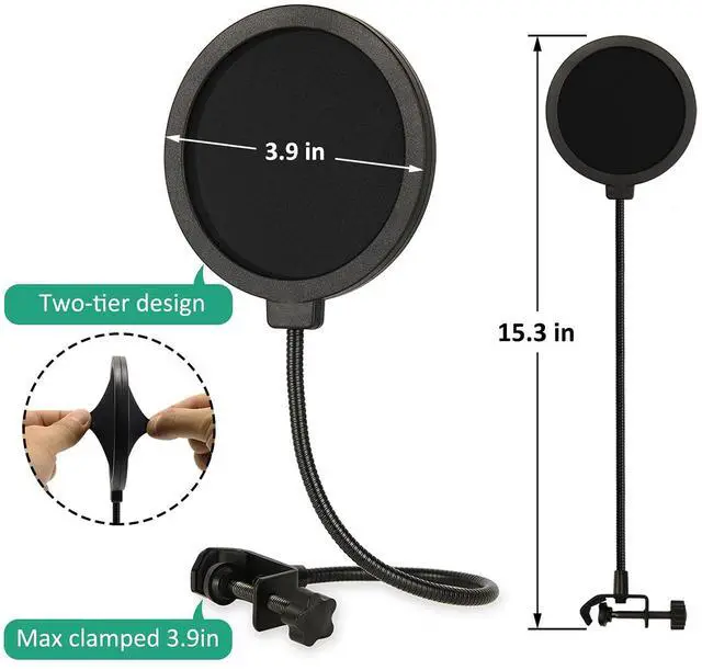 Two-tier design of the pop filter for microphones which help users get a clear and loud sound.