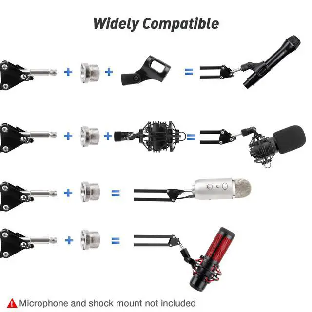 The uniquely designed Mic Boom Arm is paired with the yperX QuadCast, Blue Yeti, Blue Snowball, Shure SM58 Microphone,etc for a better experience.