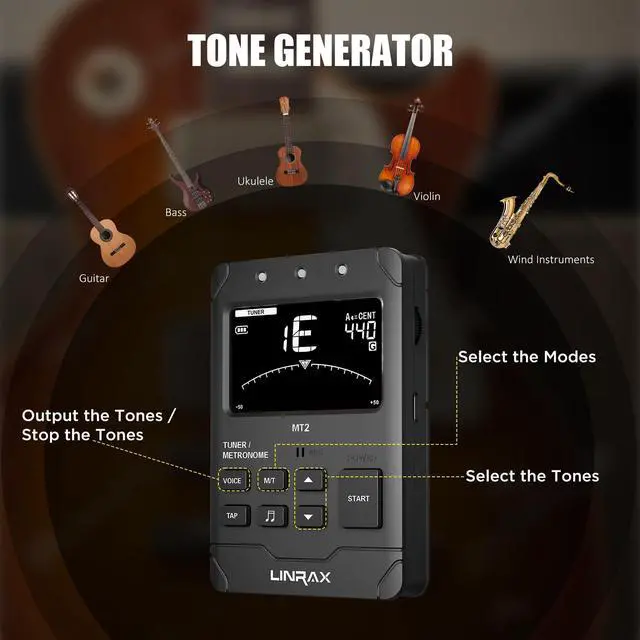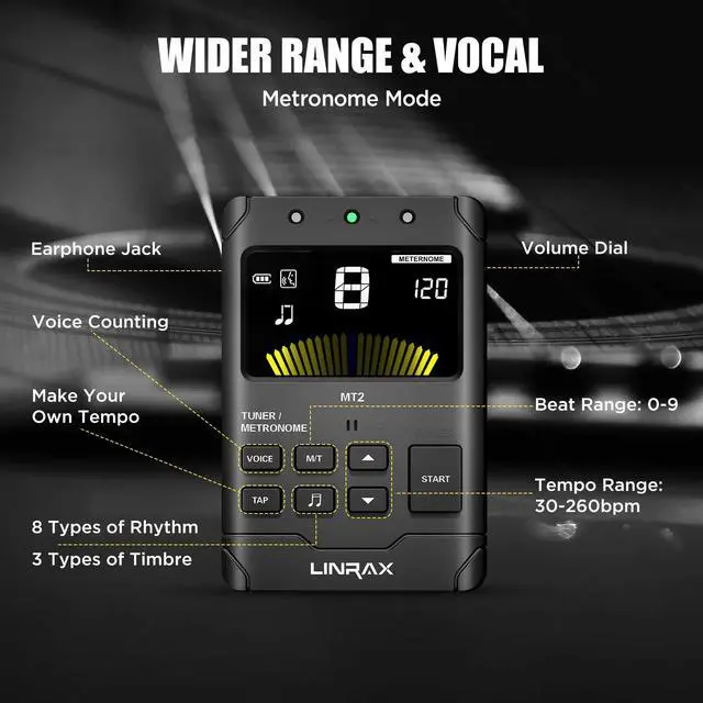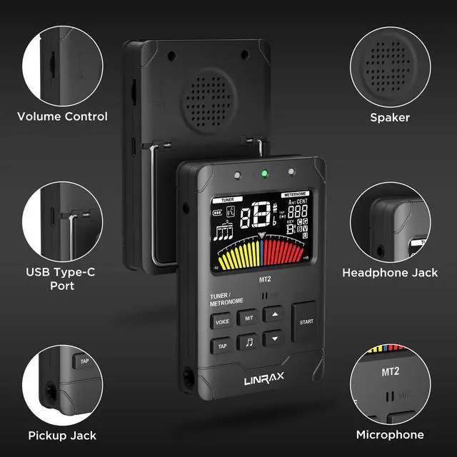 Linrax MT2 Rechargeable Tuner Metronome -- Metronome & Tuner & Tone Generator 3 in 1