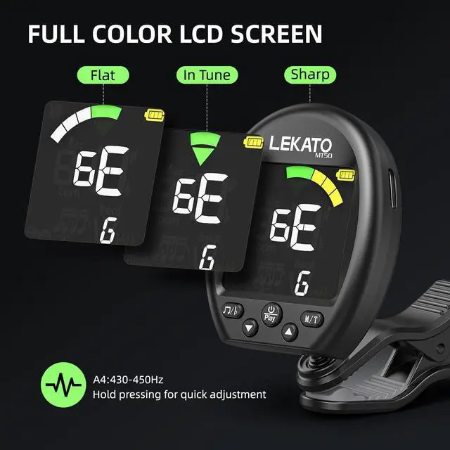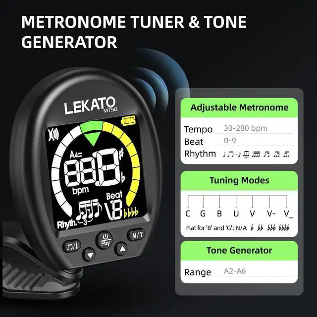 [All-in-one Clip-on Metronome Tuner]: It combines a metronome, tuner, and pitch generator into one compact device. Ideal for stage performances, studio recording, or personal practice. Tone generator covers A2A6 for quick and accurate pitch alignment.