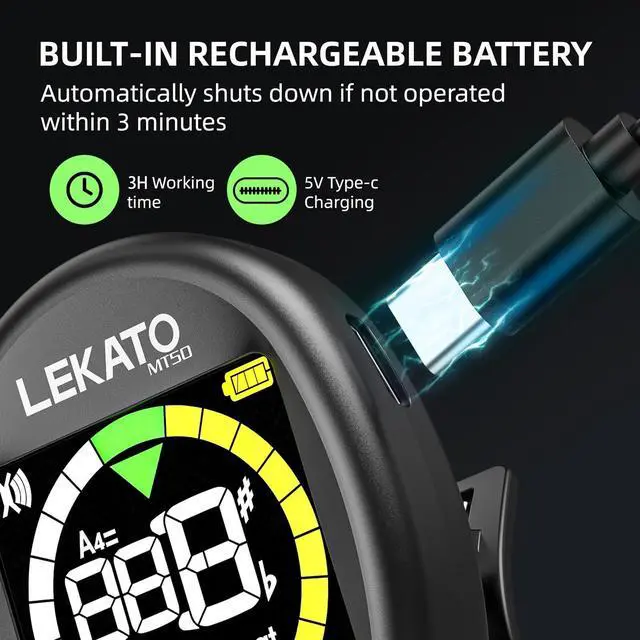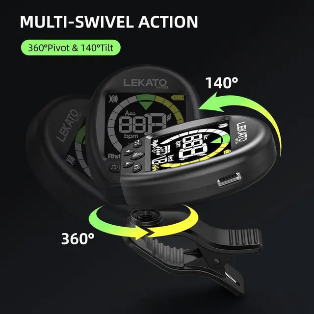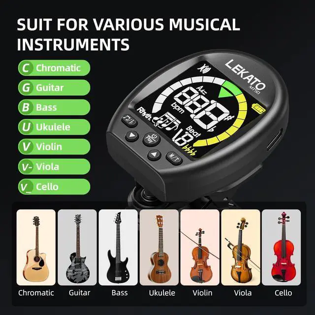 [Full Color LCD Screen]: High-contrast vertical design resists glare even under bright lights. Clearly shows pitch, beat, and tuning mode. Rotatable design allows flexible viewing for left/right-handed players.
