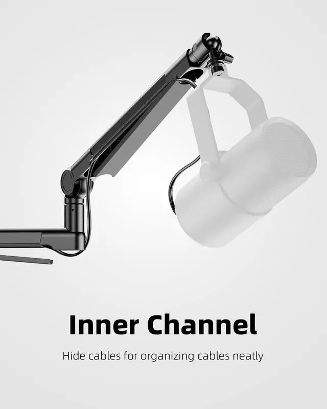 Hidden Cable Management: Integrated hidden cable channel keeps your microphone wiring organized and tangle-free, ensuring a clean streaming setup while preventing cable strain during adjustments.