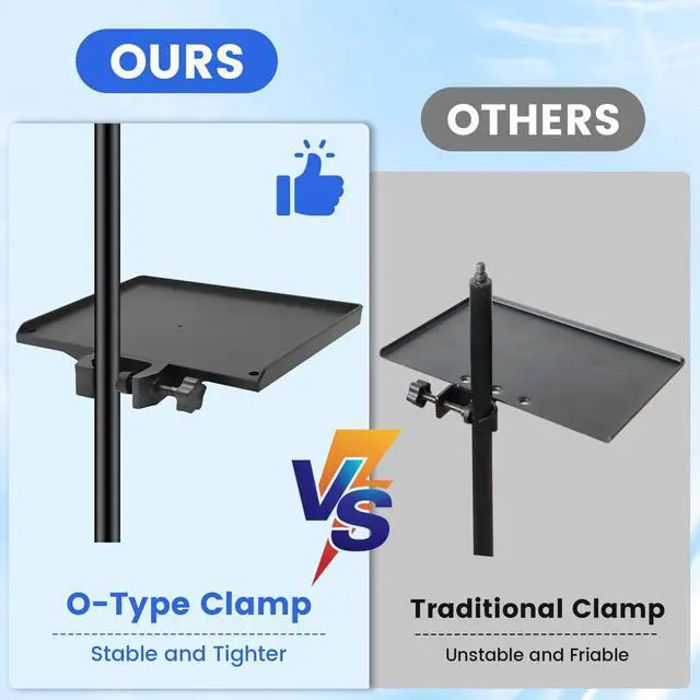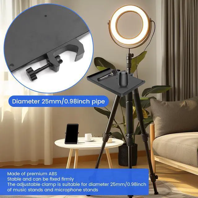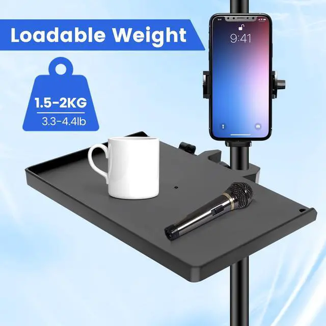 - Multi-function Tray: Not only can be fixed on the microphone stand or music stand but also can be convenient for you to put a variety of gadgets on it, such as guitar accessories, microphone accessories, music sheets, glasses, cellphone, etc.