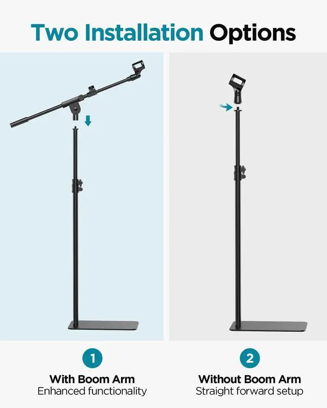 A 3.7 lb cast iron base delivers unwavering stability, anchoring your microphone to eliminate wobble and ensure professional, vibration-free recordings every time. Designed for podcasting, studio work, and live performances, it ensures your equipment is always ready to deliver.