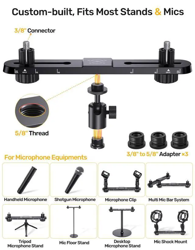 ![]() Stereo Array Spacing Microphone Holder with All-Metal Mic Ball Head Adapter, ... | ![]() Stereo Array Spacing Mic Mount Bar with 360° Mic Ball Head Adapter, Adjustabl... | ![]() Stereo Array Spacing Microphone Holder with Scale Adjustable Position for Two... | ![]() Stereo Array Spacing Mic Mount Bar with Ruled Markings for XY ORTF Recording ... | ![]() Ball and Socket Head Microphone Adapter with Angle Adjustment [All Metal], Un... | |