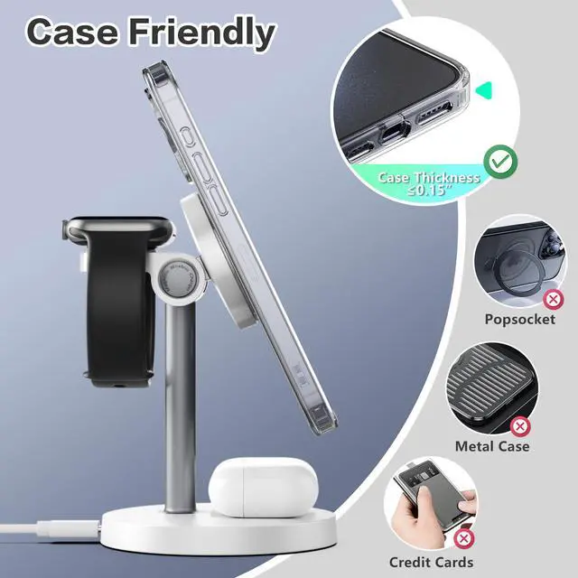 | Compatible Devices | [AirPods]AriPods Pro 3, AriPods Pro 2, AriPods Pro, AriPods 4AriPods 3AriPods 2(Note: for AirPods 2/3/4, needs work with a wireless charging case ), [Apple Watch]Apple Watch Series 11, Apple Watch Series 10,Apple Watch Series 9,Apple Watch Ultra 2,Apple Watch Ultra 1,Watch Series 8, Apple Watch Series 7, Apple Watch Series 6, Apple Watch Series SE, Apple Watch Series 5, Apple Watch Series 4, Apple Watch Series 3, Apple Watch Series 2, [iPhone]iPhone 17, 17 Pro, 17 Pro Max, iPhone Air,iPhone 16e,iPhone 16 Pro Max, iPhone 16 Pro,iPhone 16 Plus,iPhone 16,iPhone 15 Pro Max, iPhone 15 Pro,iPhone 15 Plus,iPhone 15, iPhone 14 Pro Max, iPhone 14 Pro, iPhone 14 Plus, iPhone 14, iPhone 13 Pro Max, iPhone 13 Pro, iPhone 13, iPhone 13 mini, iPhone 12 Pro Max, iPhone 12 Pro, iPhone 12, iPhone 12 mini, iPhone 11 Pro Max, iPhone 11 Pro, iPhone 11, iPhone SE (2nd generation), iPhone XS MAX, iPhone XS, iPhone XR, iPhone X, iPhone 8 Plus, iPhone 8 |