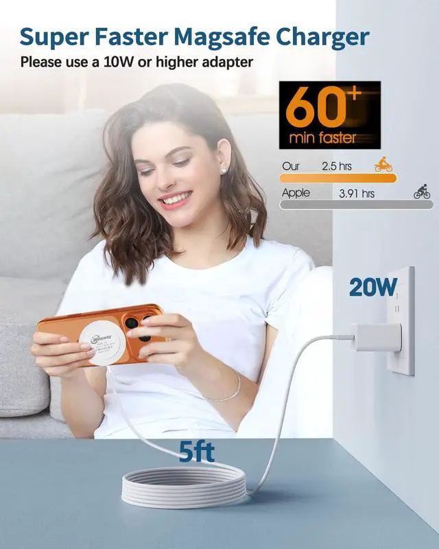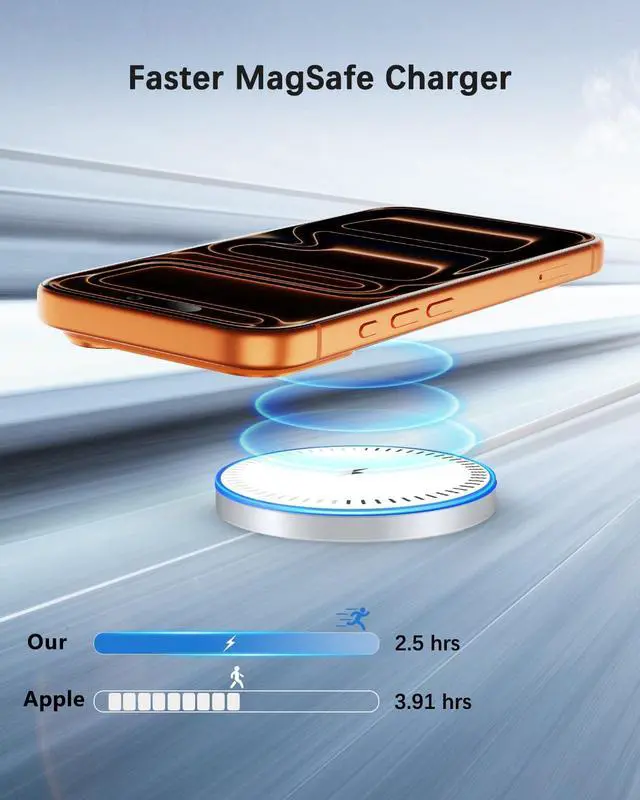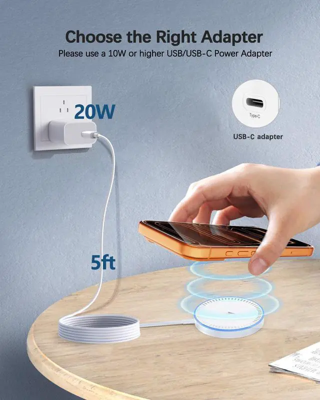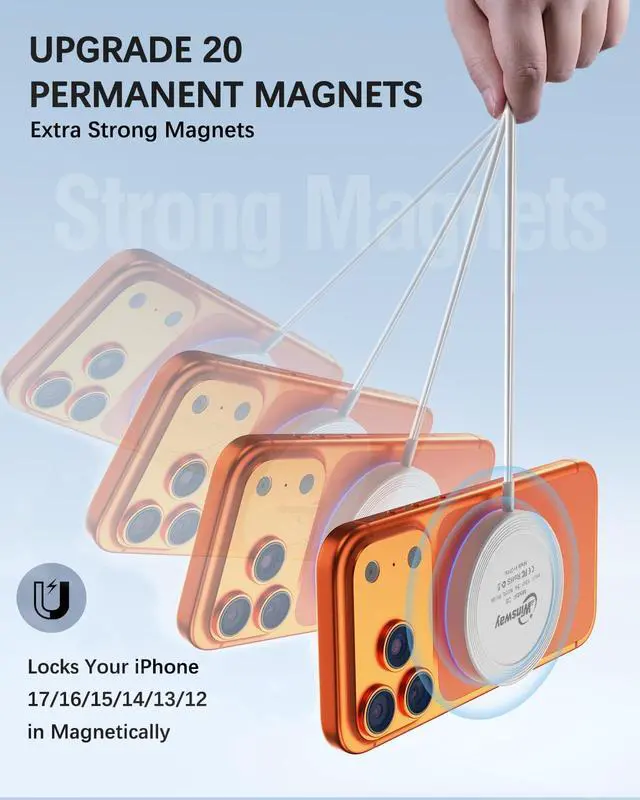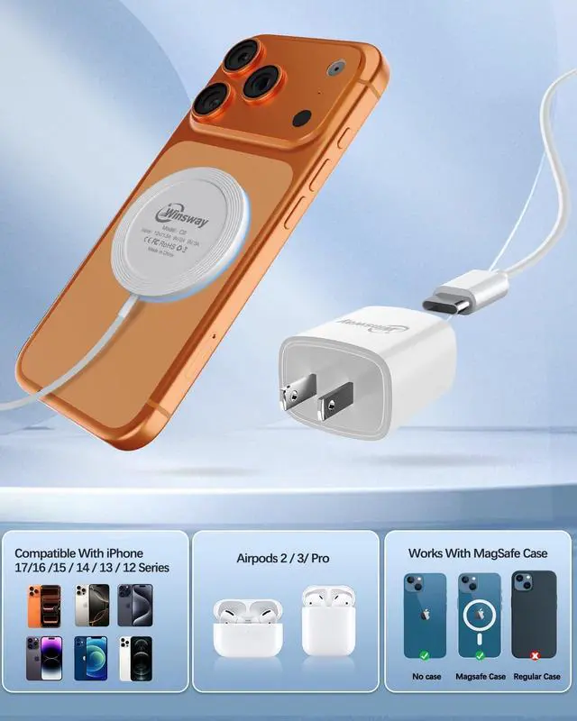 Fast Charging Experience:Winsway Type-C 20W PD adapter brings fast charging speed with Magnetic Wireless Charging Pad, 2X faster than that of the original 5W charger. The charging pad is compatible with iPhone 17/16/15/14/13/12 series models and other wireless devices (iPhone 8-11 series).