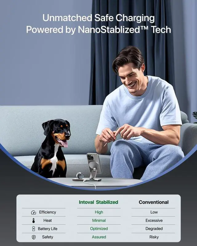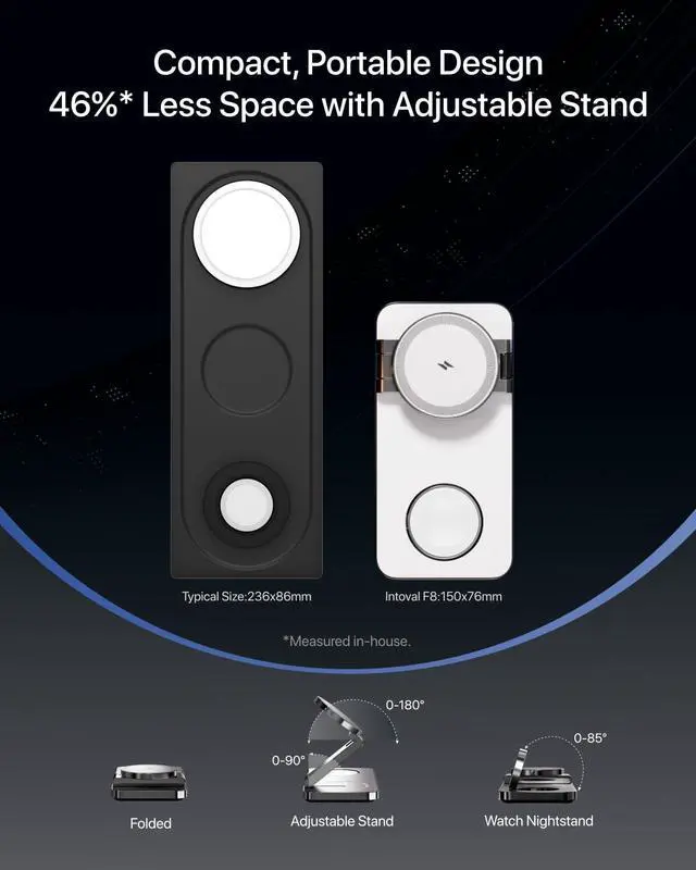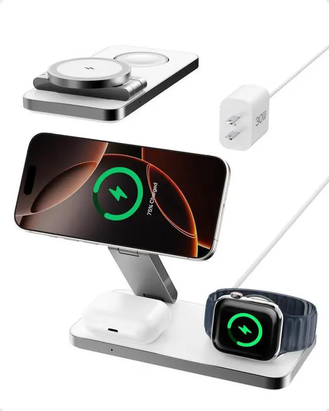 This 3-in-1 MagSafe charger is perfect for any setting—office, bedside, airport,or travel. Its foldable design offers fast, reliable charging wherever you are.