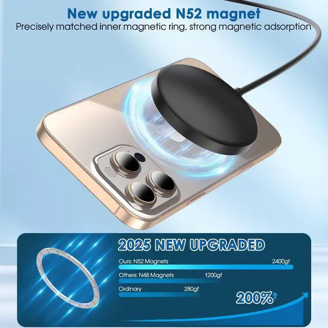 Buying ultra-thin magnetic chargers really makes your life easier. Its slim design is very suitable for mobile charging. The 6-foot hard wired cable charger and 20W PD adapter are perfect for home, office, or travel.