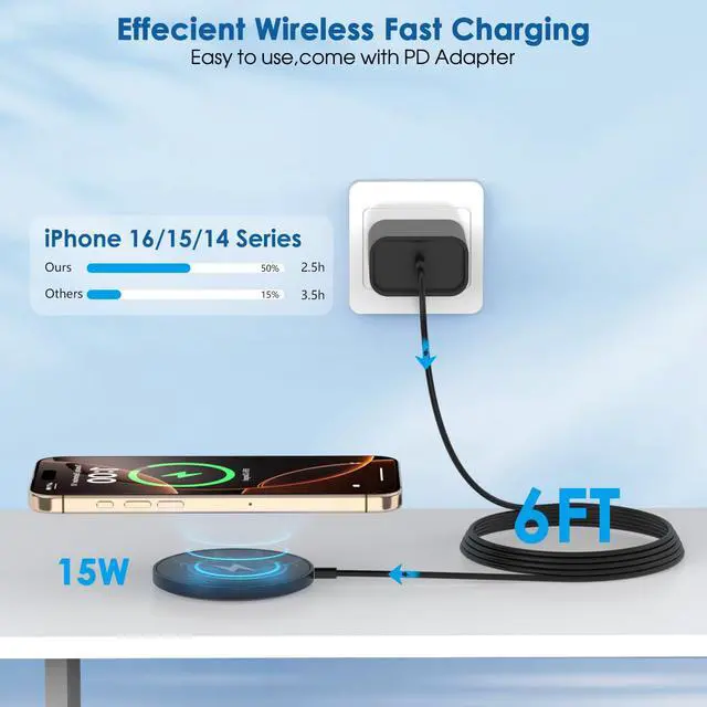 When charging iPhone 16 with a 15W magnetic charger, it only takes half an hour to go from 0-50% and 2.5 hours to go from 0-100%, which is three times faster than the original 5W charging speed, providing you with a more efficient life.