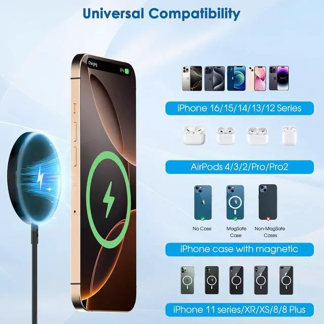 1. Supports use without a phone case or Mag-Safe case. For standard phone cases, we recommend removing the case before charging.