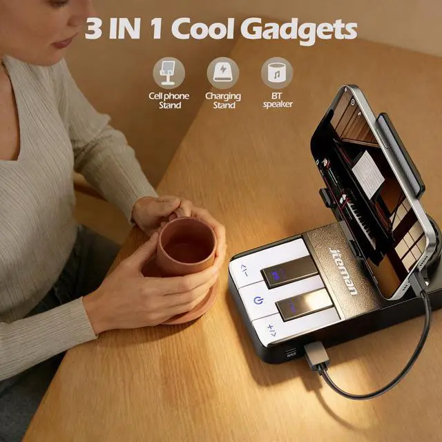 Cell Phone Stand with Bluetooth Speaker and Charging Stand,Piano Keys Design,Birthday Gifts for Men Women Dad Mom Husband Boyfriend Cool Tech Gadgets-Black