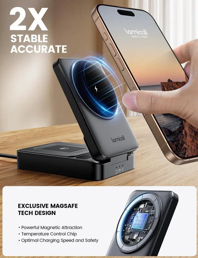 ![Alt view image 5 of 7 - Foldable 3 in 1 Wireless Charging Station for Apple MagSafe - [Upgraded Cooling & Reliability] Compact Travel Magnetic Charger Stand for iPhone 17 16 15 14 13 Pro Max, AirPods, Apple Watch](https://c1.neweggimages.com/productimage/nb640/C5M0D2603190Z9KG356.jpg)
