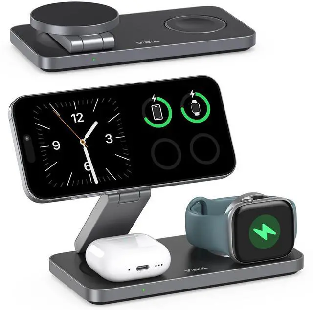 VBA 3 in 1 Wireless Charging Station for Apple MagSafe Charger,Foldable Fast Charging Magnetic Wireless Charger Stand,Travel Charger for iPhone 17 Air 16 15 14 13 12,Apple Watch,AirPods Pro(White)