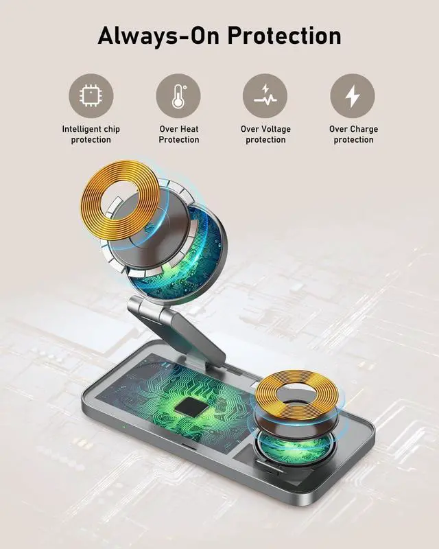 | Additional Features | 3 in 1 Charging,Strong magnetic,Fast Charging,Multi device charging,Lightweight Design, Magsafe Compatible, Short Circuit Protection, Travel, Wireless Charging |