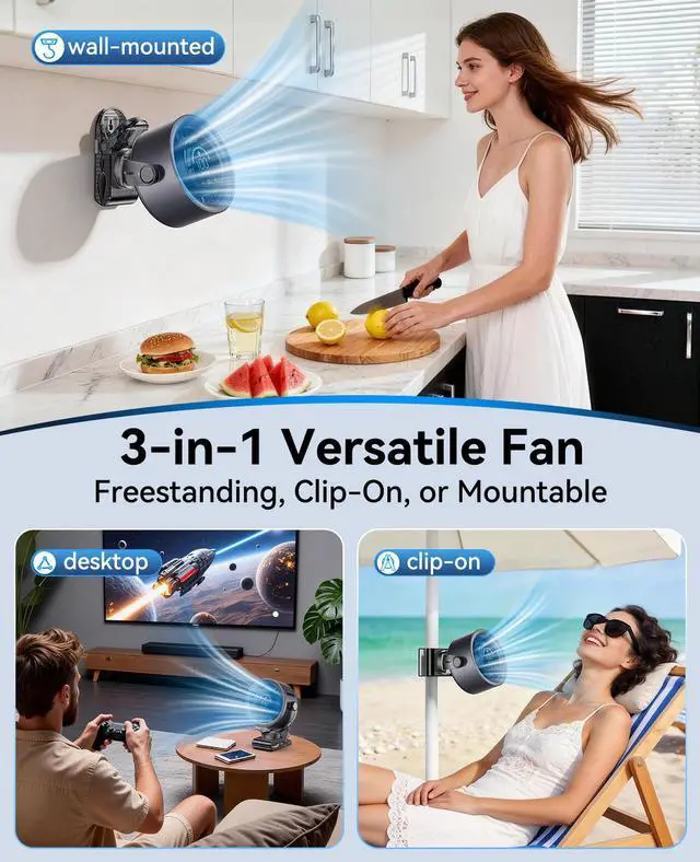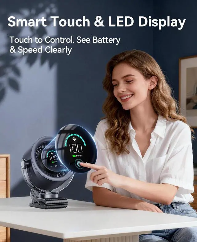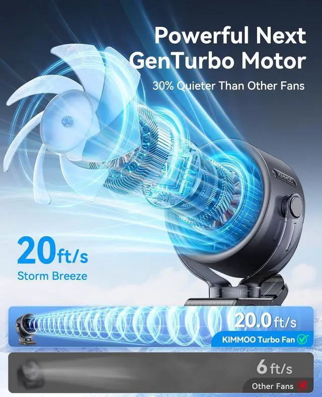 KIMMOO Rechargeable Portable Clip on Fan-100-Speed Touch Control