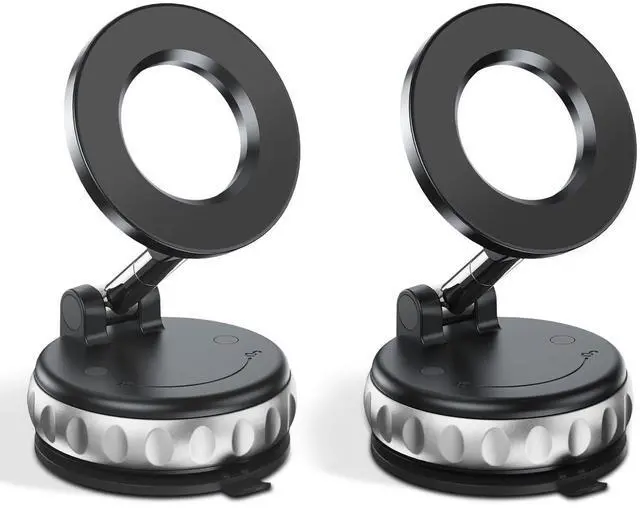 2-Pack Vacuum Suction Magnetic Phone Holder for Car Dashboard, Windshield - Hands-Free Strong Grip Mount with 360° Rotation for iPhone & Android Phones