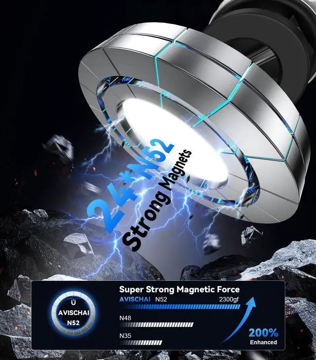 Strong Vacuum Suction & Powerful Magnetism Experience a secure hold with our innovative vacuum suction technology and 20 high-performance N52 magnets. It firmly locks your phone in place on bumpy roads without any charging or batteries, and won't interfere with phone signals