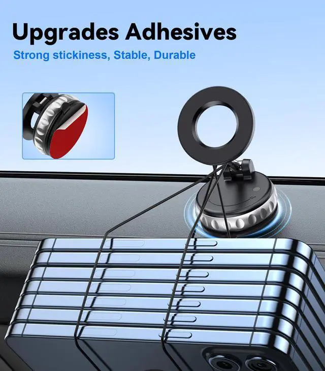 Universal Compatibility & Easy Installation Works with all smartphones including iPhone 17/16/15/14/13/12 Series and Samsung Galaxy models. The upgraded TPE suction base installs and removes in seconds without residue on dashboards or windshields. Hear the "click" to confirm secure lock
