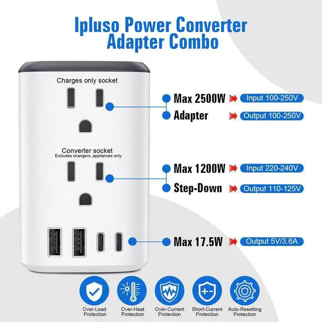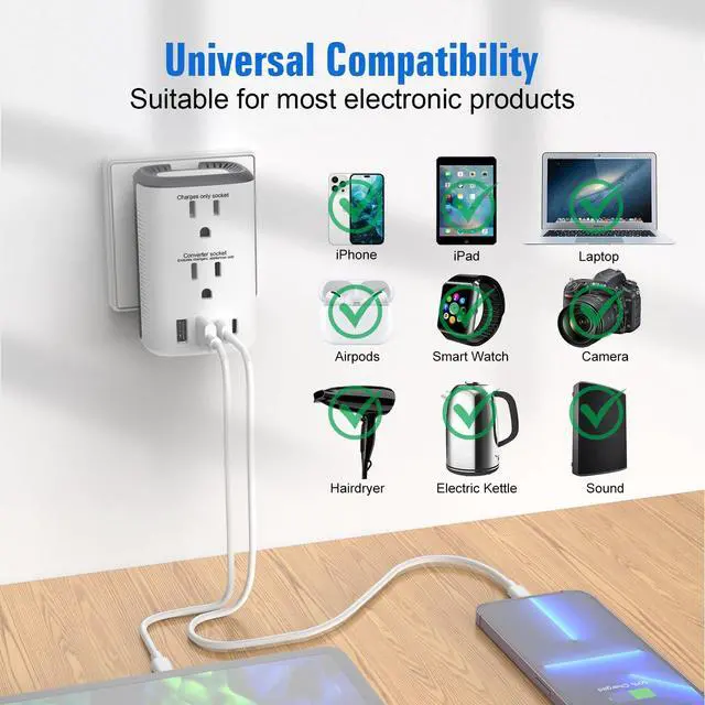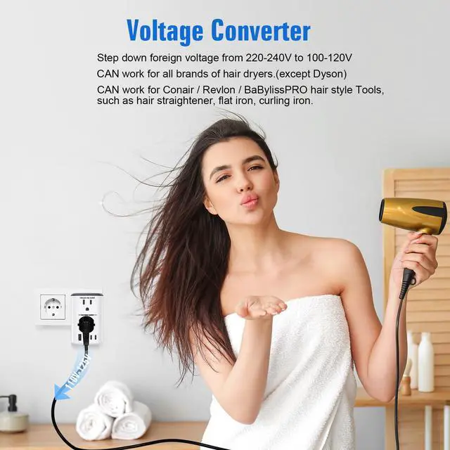 This travel converter 220v to 110v equipped 5 feet detachable EU power cable and 5 different international adapter plugs(Type G/D/M/A/I plug), powering your devices in more than 200 countries, such as Australia, North America, United Kingdom, Germany, France, Continental Europe, Dubai, Japan, China, Israel, Thailand, Philippines, Peru, South Korea, Malaysia, New Zealand, Singapore, Turkey, India, South Africa and more.