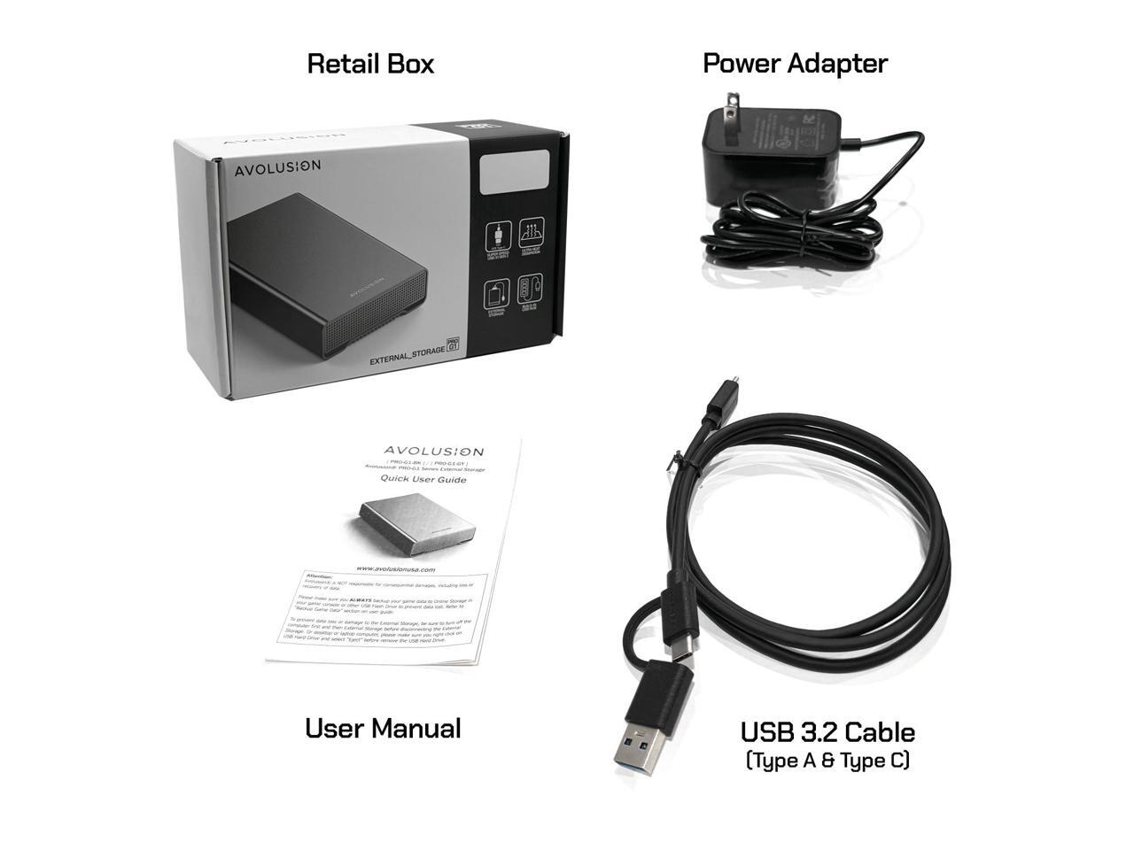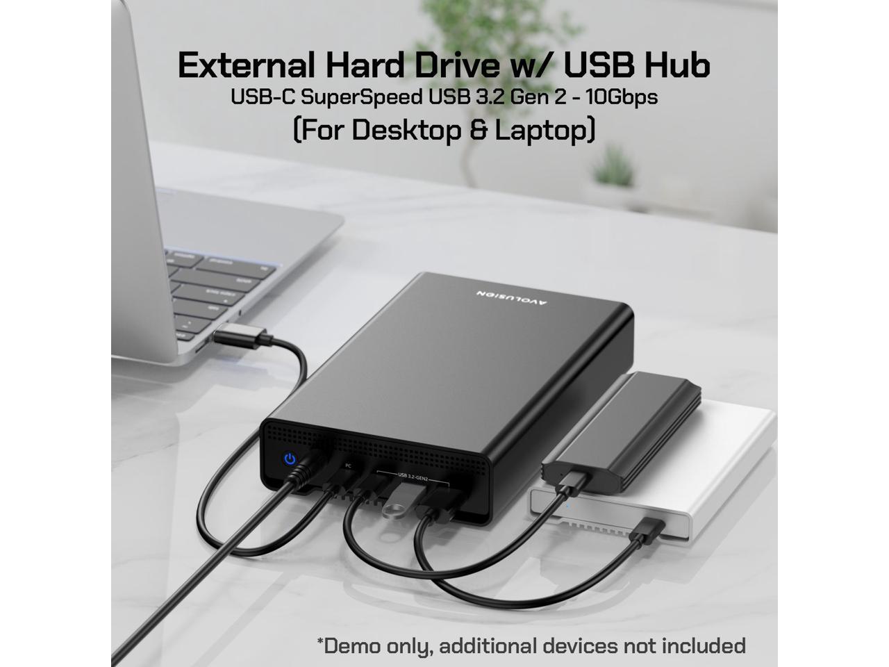 Avolusion PRO-G1 Series 10TB USB 3.2 Gen 2 USB-C External Hard Drive with USB Hub for Windows or MacOS Desktop PC / Laptop (Black) - 2 Year Warranty