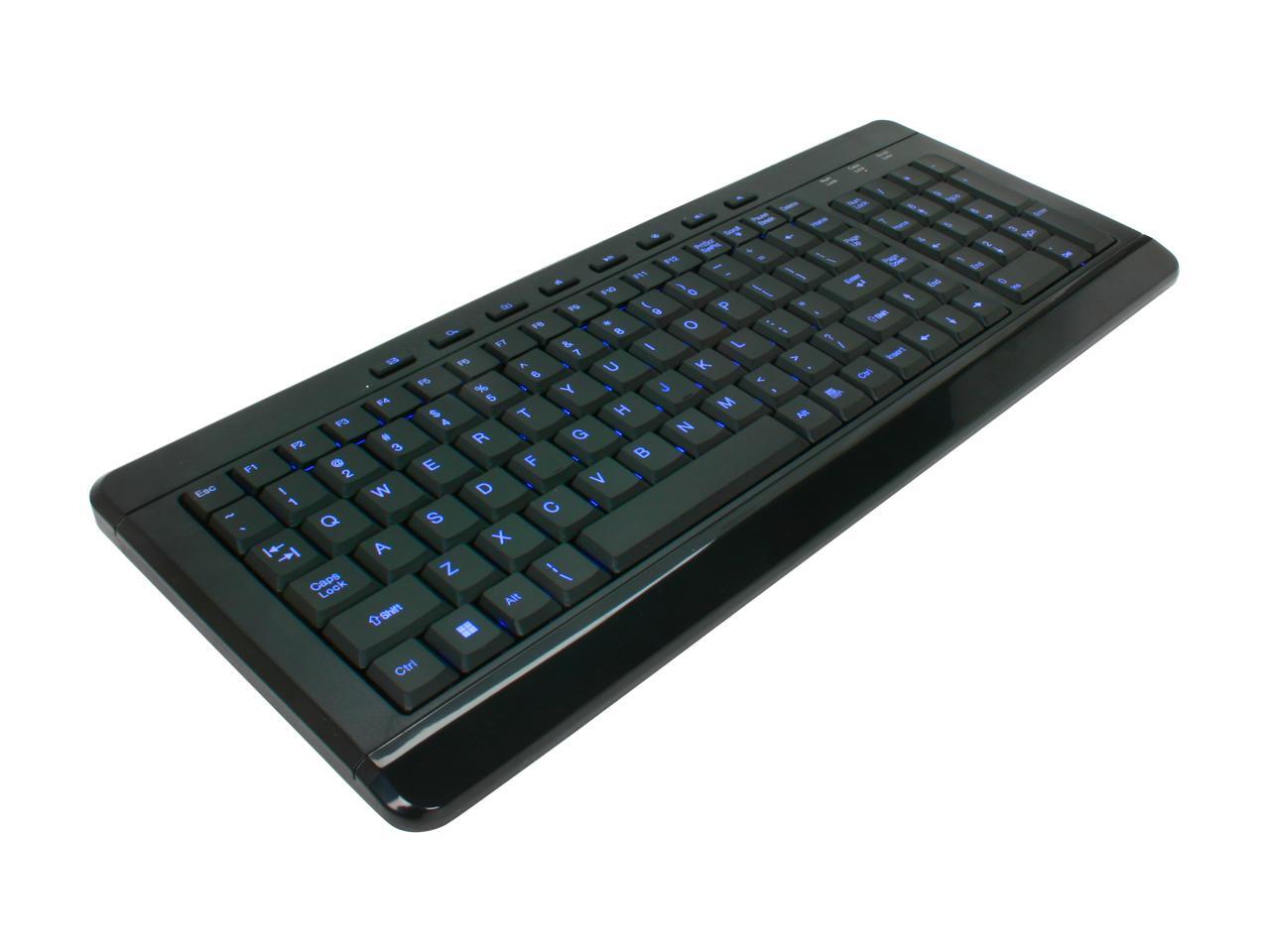 AVS Gear W9868BL Black USB Wired Slim Keyboard with Blue LED Light