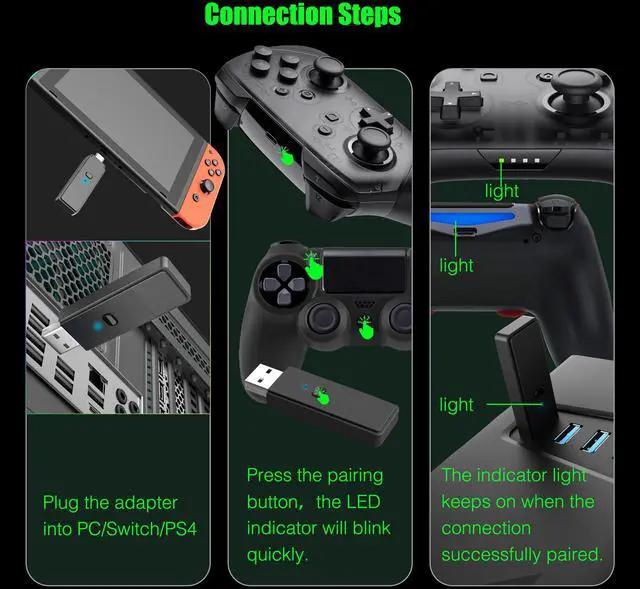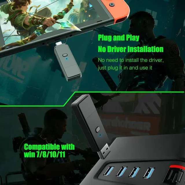 Plug and Play, No Driver Installation NeededSimply plug the dongle into your computer/Switch 1/P4 and start playing without the hassle of driver installation. Enjoy your favorite games instantly.