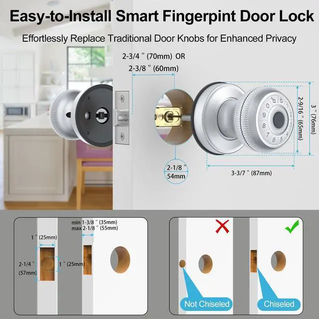 3. **Effortless Installation:** Upgrade your door hardware easily with our biometric door knobs straightforward installation process. Designed to fit standard door preparations with included tools and instructions, its a hassle-free DIY project.