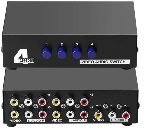 Vszerda AV Switch Box Composite Selector 4 Port RCA Audio Video 4 in 1 Out to TV