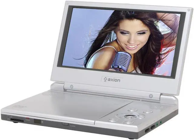 The Axion portable DVD player has everything you need to keep your family entertained at home or on the road. Its vibration-resistant design delivers smooth performance in the car or in your lap, so you'll enjoy skip-free viewing wherever you go. The 9" flip-up widescreen TFT display is adjustable through 180-degrees of tilt for comfortable viewing, and offers brightness adjustment, so you can choose the perfect balance between visibility and battery life.