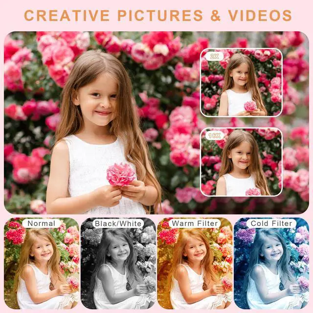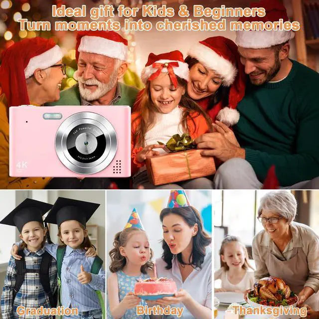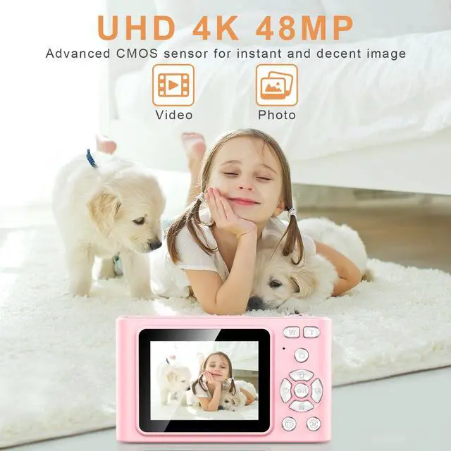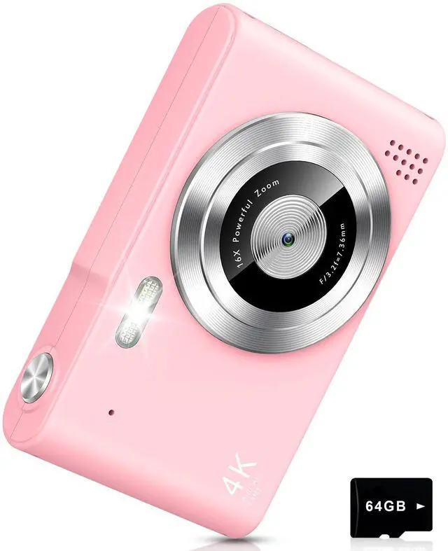 Digital Camera, Camera for Kids, UHD 4K 48MP Point and Shoot Digital Cameras with 64GB SD Card and 16X Digital Zoom Anti Shake, Compact Portable Small Gift for Boys Girls Students, Pink,Digital Camera