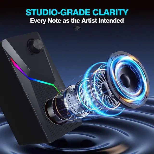 PC Speakers for Computer - Crystal Clear Stereo Sound: Experience crisp audio with these dual-channel PC speakers, delivering balanced bass and clear treble. Ideal for gaming setups, home offices, and entertainment systems - fills any room with rich, distortion-free sound from your desktop or laptop computer.