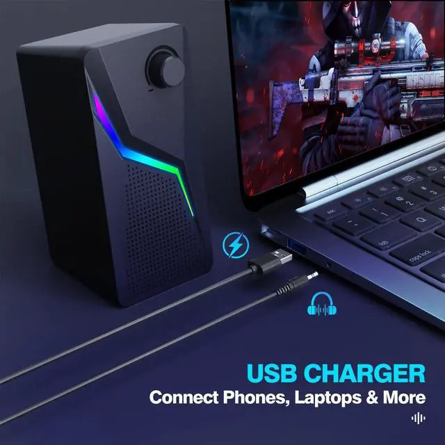 Plug & Play PC Speakers - Works Instantly with Any Device: These USB powered PC speakers for computer connect in seconds via 3.5mm audio jack or USB port. Compatible with Windows, Mac, Linux, PS5, and smartphones - no drivers needed! Ideal for home office, gaming, and online classes.