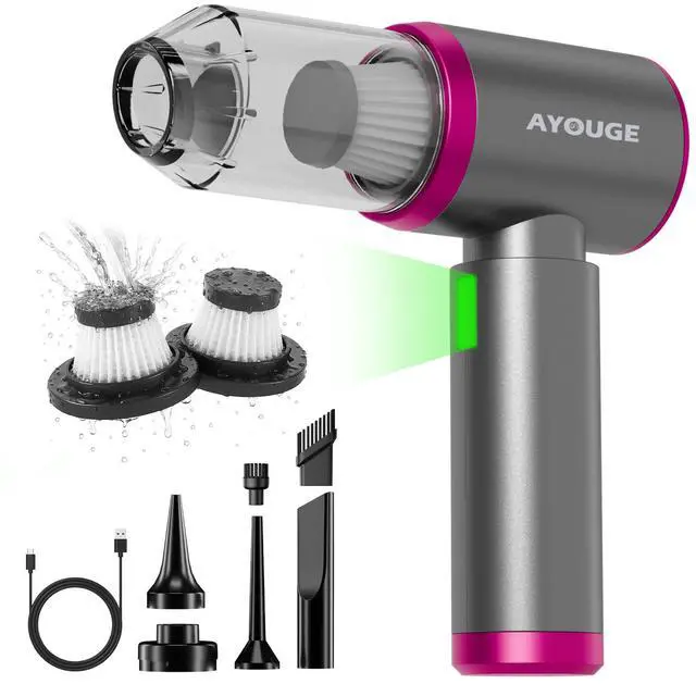 - Professional Accessories& LED Light : Our handheld vacuum cleaner comes with a variety of accessories for blowing, sucking, and inflating multiple scenarios of use. Equipped with an LED light, making it easy to spot dust in any corner. With 3 gear adjustment wind speeds to meet various cleaning needs.