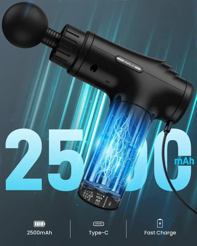 The AYURA Massage Gun Deep Tissue is your all-in-one percussion massage gun for powerful muscle recovery and relaxation. Featuring a high-performance brushless motor with up to 3200RPM, it provides professional-grade deep tissue massage that penetrates tension and fatigue. The 2500mAh rechargeable battery and Type-C port ensure long-lasting power and quick charging convenience. With 30 speed levels, a built-in 10-minute auto shut-off, and 6 interchangeable heads, you can enjoy a personalized full-body massage anytime. Despite its strength, this mini massage gun is lightweight, quiet, and easy to useperfect for gym sessions, office breaks, or post-workout recovery. Compact, portable, and elegant, its not just a muscle massager gunits the perfect self-care companion and a great gift for anyone who values wellness.