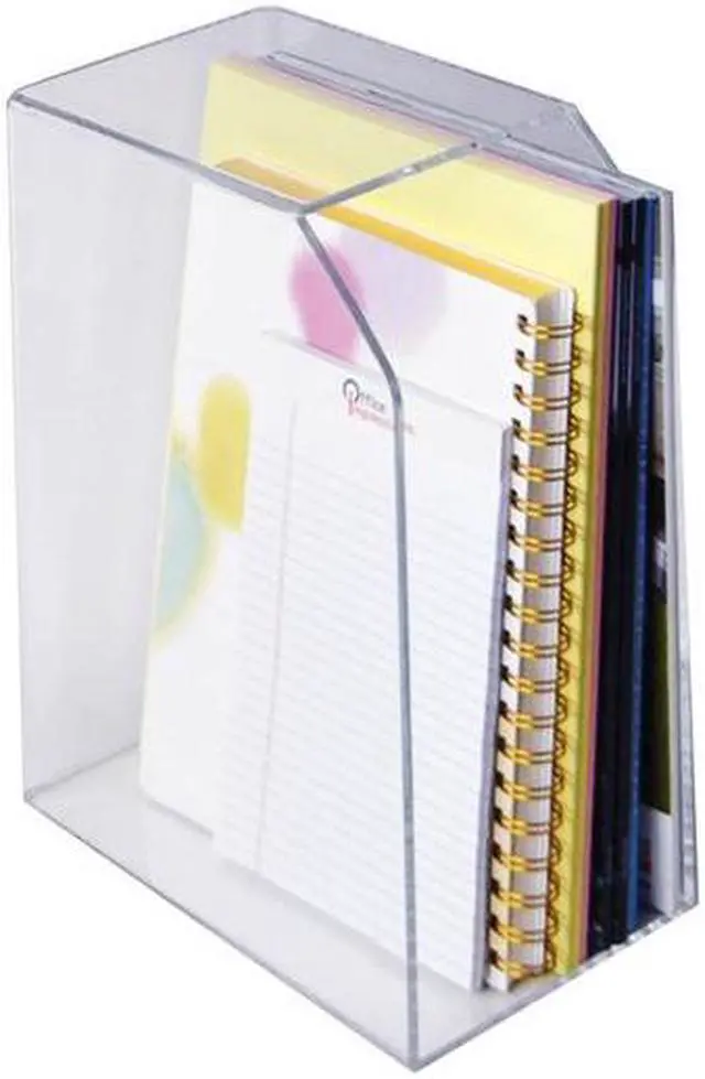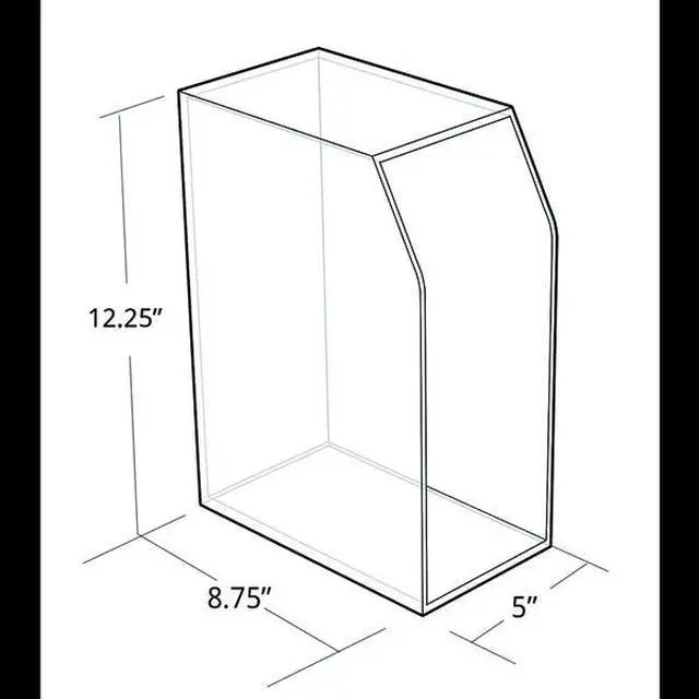 Azar's Desktop Magazine and File Holder keeps magazines, journals, catalogs, brochures, files and other printed material organized, visible and accessible. Made from highly durable clear 3/16" thick acrylic. Use multiple magazine holders to organize your space! Hanging Hardware not included.
