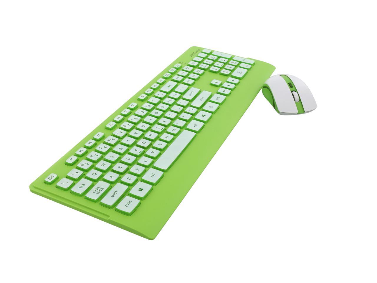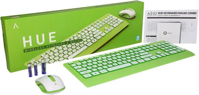 Add a splash of vibrant color to your computer desk with the AZIO HUE KM507 wireless keyboard & mouse combo. Available in the delicious colors of Berry Blue, Lime Green and Candy Pink, this kit will light up your work space and your mood. Using a single unified USB transceiver, this combo frees you from cable limitation and eliminates clutters and tangles. The ambidextrous mouse fits perfectly in either hand, and navigates and points with unbeatable speed and accuracy. The keyboard utilizes chiclet style, island keys that are less prone to trap debris, and can be ergonomically tilted with adjustable legs.