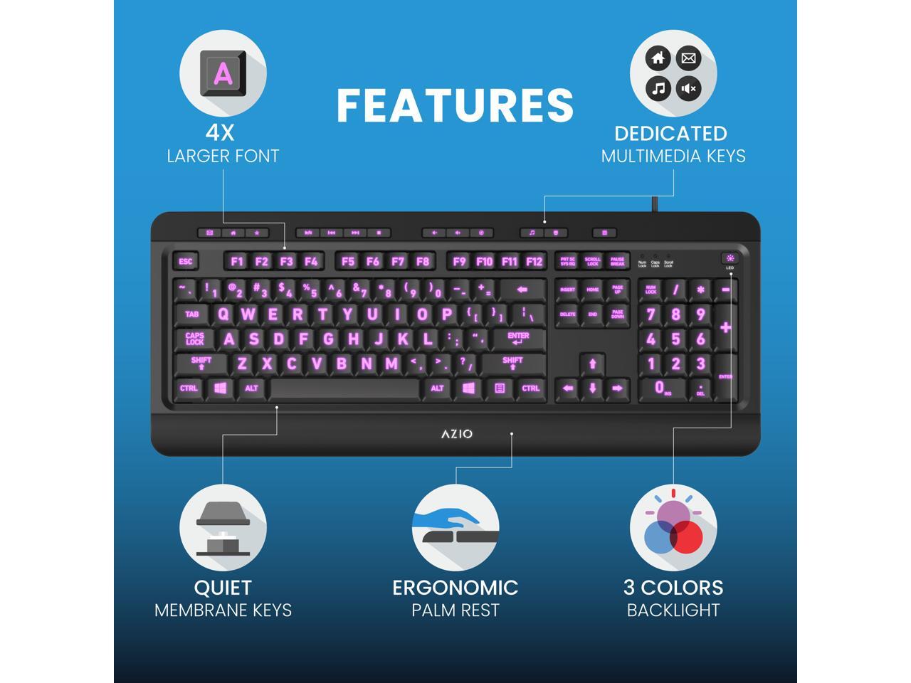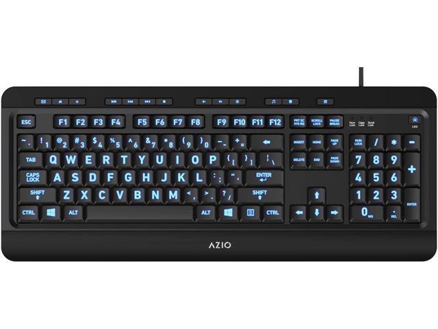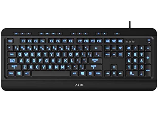 AZIO KB505U Black USB Wired Standard Large Print 3 Color Backlit Keyboard