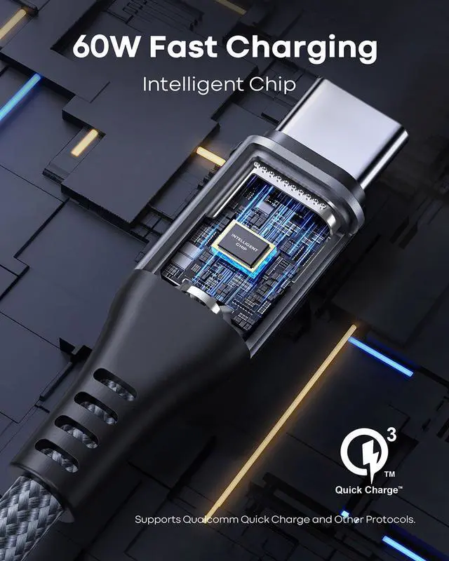 Crafted for durability that scoffs at the laws of wear and tear, this extended USB Type-C Cable chuckles in the face of daily challenges. Enduring over ten times the typical trials, bid farewell to feeble USB C cables; this one's here to rescue your charging day!