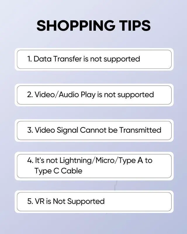 ![]() USB C to USB C Cable | ![]() USB C to USB C Cable | ![]() USB A to USB C Cable | ![]() USB A to USB C Cable | |
