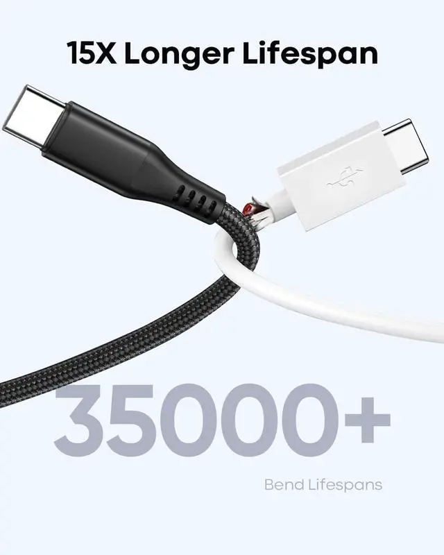 Experience enhanced durability with our AZPPANXI 20ft USB C to Type C Cable Charger Cord, featuring a premium nylon-braided jacket and sturdy aluminum housing. This powerful combination not only elevates the cable's sleek aesthetic but also fortifies it to endure over 35,000 bends, ensuring resilience against the daily wear and tear challenges.